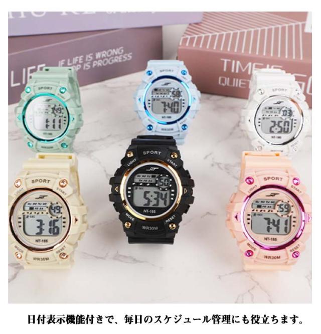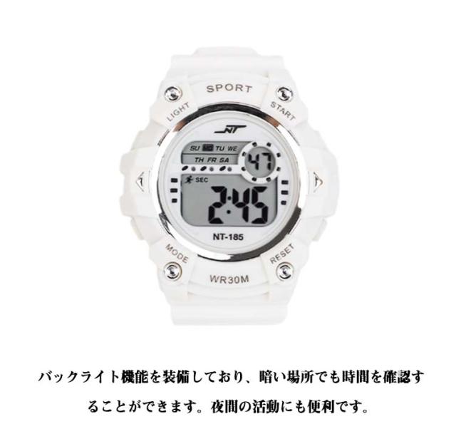 デジタル 夜光 高校生 デジタル腕時計 夜光 アラーム 大人 レディース メンズ キッズ 小学生 子供 腕時計 防水 ベルト 文字が見やすい ライト スポーツウォッチ ストップウォッチ ブラック シンプル スポーツ ホワイト 黒