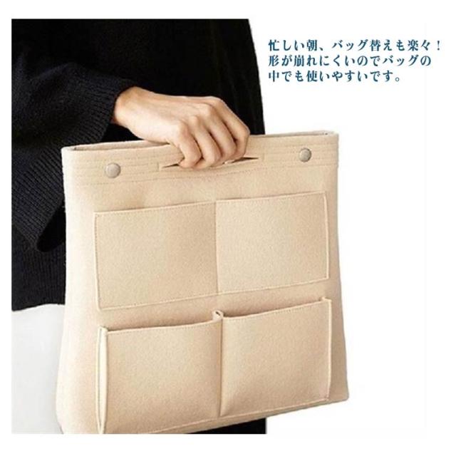 フェルト ハンドバッグ レディース インナーバッグ 軽い 自立 バッグインバッグ 大きめ バッグインバッグ マルチポーチ 収納ポーチ 化粧品入れ 小物収納 仕分け メンズ 大容量 お洒落 コスメバッグ 整理整頓 小物入れ 軽量