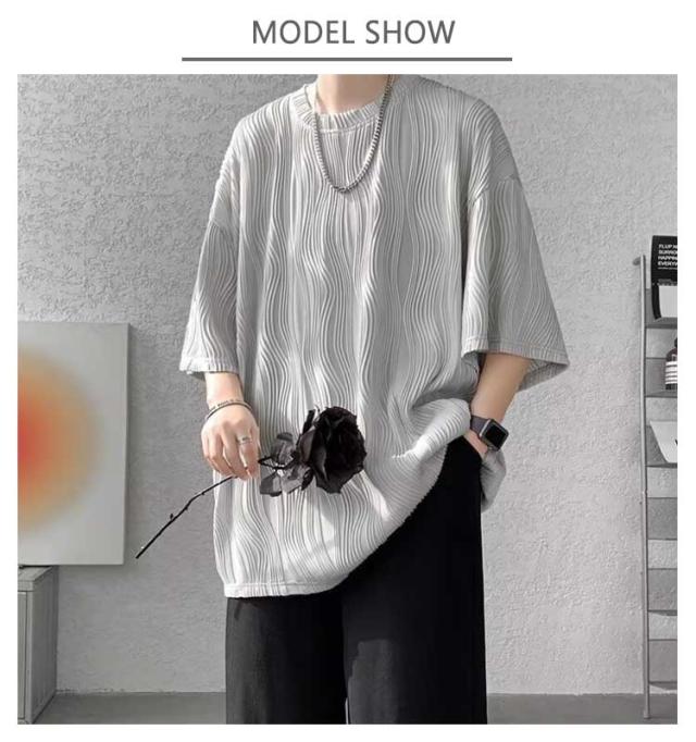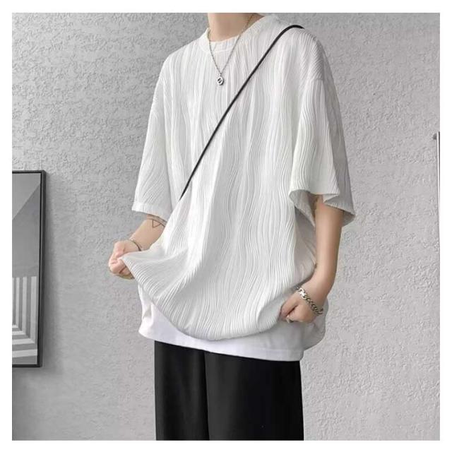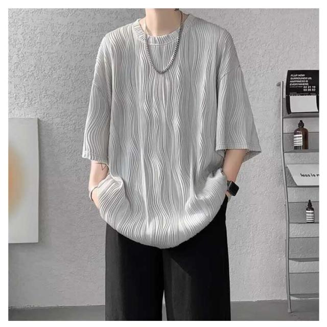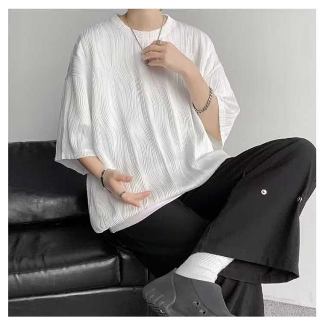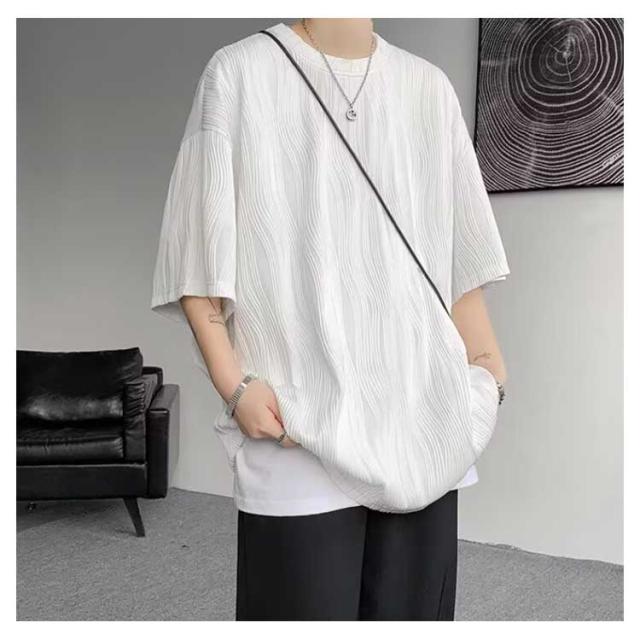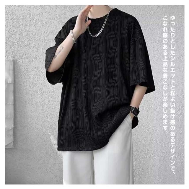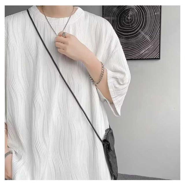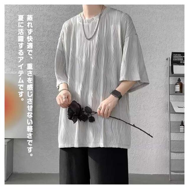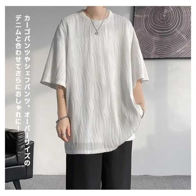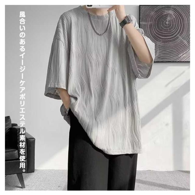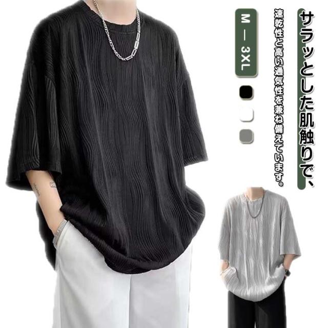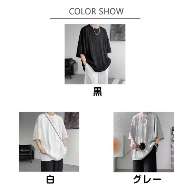 夏服 接触冷感 ビッグシルエット カットソー 通気性 ビッグT 大きいサイズ メンズ トップス ゆったり かっこいい クルーネック 接触冷感 七分袖 涼感 快適 ストリート 軽い 柔らかい 無地T シンプル