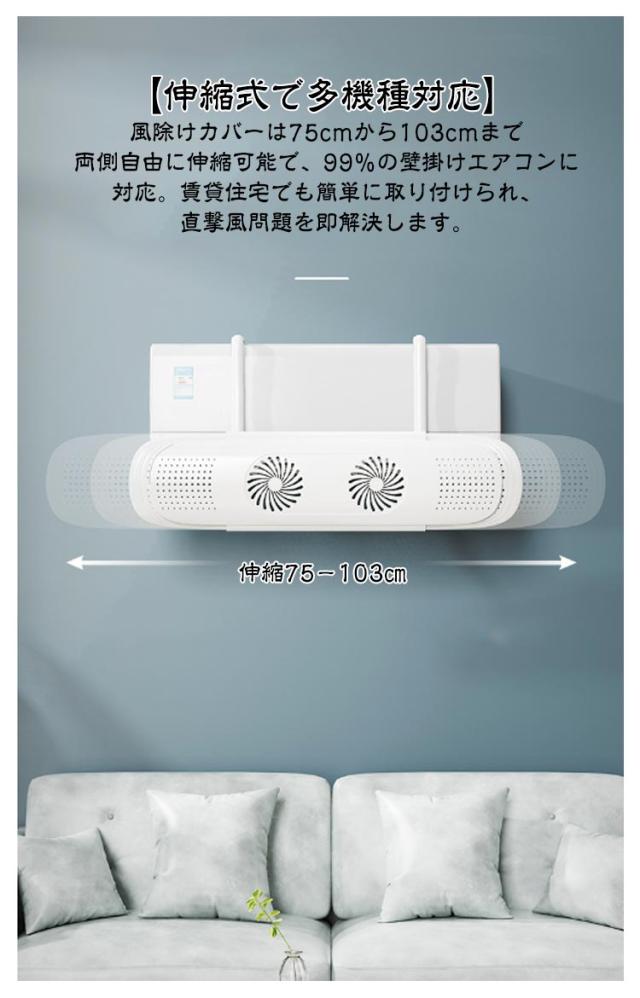 74-103cm伸縮式 ルーバー ファン 風除け 角度調整 カバー 空気循環 エアコン 風よけ 冷房 パネル エアコン風よけカバー ファン付き 風向き調整 冷暖房効率アップ 暖房 乾燥 直風 防止 直撃風対策 軽量 吊り下げ 掛け式 取り付け簡単 結露防止 節電 省エネ 快適 リビング