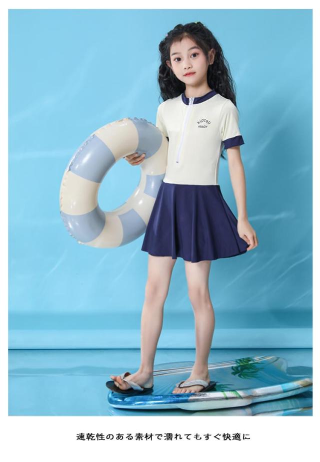 水着 キッズ 子供水着 半袖 女の子 フロントジッパー インナーパンツ付き スイムウェア シンプル かわいい ワンピース水着 着脱簡単 スイミング スクール用 ジュニア ガールズ 女児 小学生