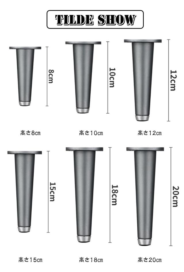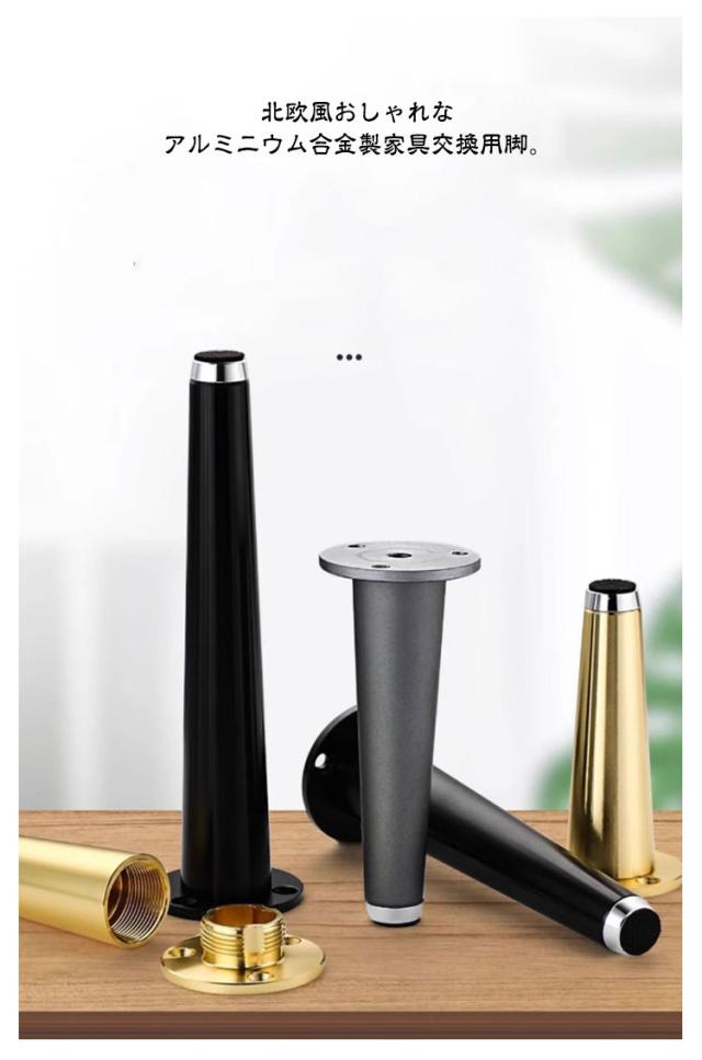 テーブル足 継ぎ脚 高さ調整 アルミニウム合金製 丸 置き換え 継脚 机 ソファ足 モダン 4本セット 家具足 キャビネット足 机足 円錐形 継足 北欧 おしゃれ 頑丈 耐久性 テーブル 4本セット ソファー かさ上げ台 サポート脚