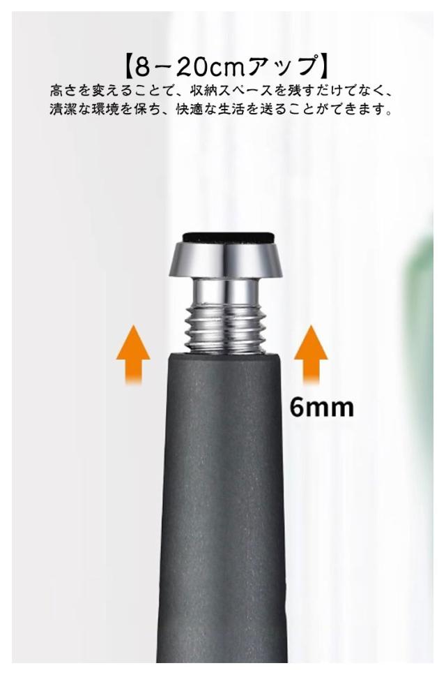 | 北欧風おしゃれなアルミニウム合金製家具交換用脚。【4本セット】【高さ8−20cm】【滑り止め止めパッド付き】 【傷防止・騒音防止】底部にはゴム素材が採用されており、継ぎ脚が滑らず、床に傷もつきにくく、防音効果も発揮します。家具を運ぶときに床が損なわれる心配は全くありません。 【8−20cmアップ】高さを変えることで、収納スペースを残すだけでなく、清潔な環境を保ち、快適な生活を送ることができます。 【継ぎ脚の安定感】材質は硬さと安定感のあるアルミニウム合金。4つの角を取り付けると、最大耐荷重は500KGです。地面にしっかりと貼ることができます。受力が不安定になる心配は全くありません。 【ご注意】傾斜した椅子では使用しないでください。必ず4個セットでご使用ください。万一、1個でも破損した場合は直ちに使用を中止してください。 | |