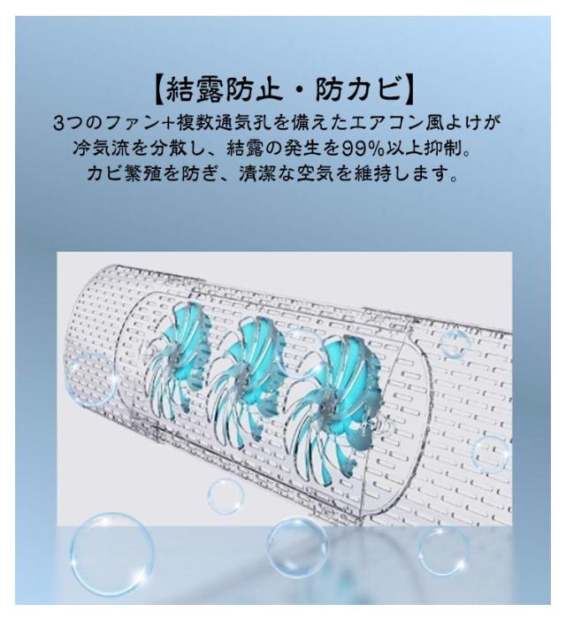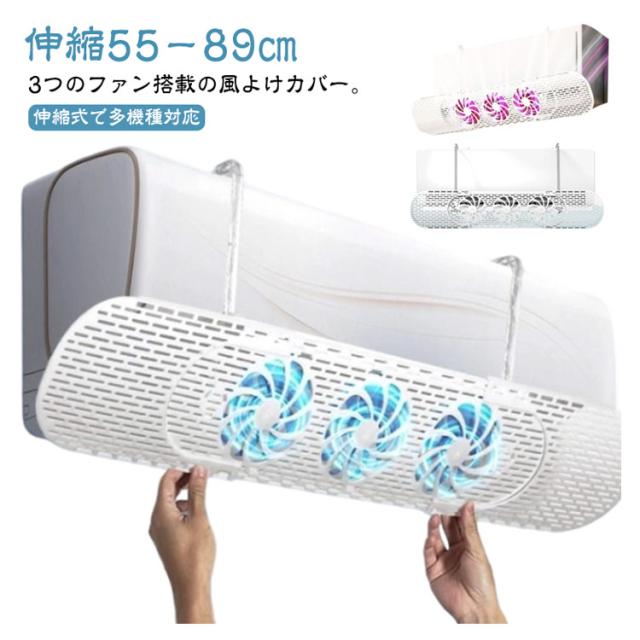 | 3つのファン搭載の風よけカバー。【伸縮55−89cm】 【冷風直撃防止&空気循環】3つのファン搭載の風よけカバーがエアコンの直撃風を効率よく分散。頭痛や鼻炎の原因となる強い風から守ります。ファンの力で自然なそよ風が素早く室内を循環し、お部屋全体にムラなく行き渡ることで、家族みんなの快適な空間を実現します。 【省電】エアコン 風よけの渦流循環設計で冷房効率30%向上!メーカー実測では、省エネ効果が確認されており、ご家庭の節電に役立ちます。 【結露防止・防カビ】3つのファン+複数通気孔を備えたエアコン風よけが冷気流を分散し、結露の発生を99%以上抑制。カビ繁殖を防ぎ、清潔な空気を維持します。 【180°角度調整で冷暖房対応】上下180°調節が可能なエアコン 風除けで、夏は冷風を上向き、冬は暖風を下向きに簡単設定可能。「暑すぎ」「冷えすぎ」といった温度ムラを解消でき、どこでも快適な環境を作れます。 【伸縮式で多機種対応】風除けカバーは55cmから89cmまで両側自由に伸縮可能で、99%の壁掛けエアコンに対応。賃貸住宅でも簡単に取り付けられ、直撃風問題を即解決します。 | |