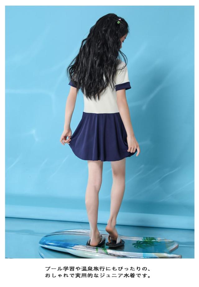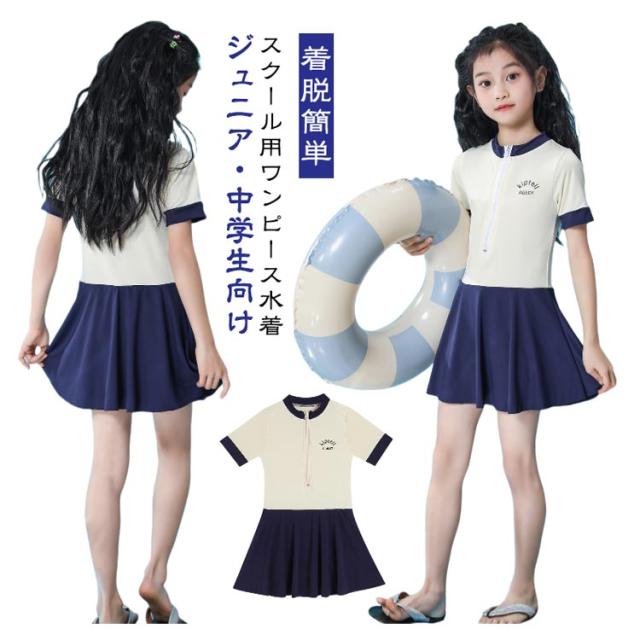 女の子 水着 子供水着 着脱簡単 水着 ワンピース水着 インナーパンツ付き スイムウェア かわいい シンプル フロントジッパー 半袖 スイミング スクール用 ジュニア ガールズ 女児 小学生