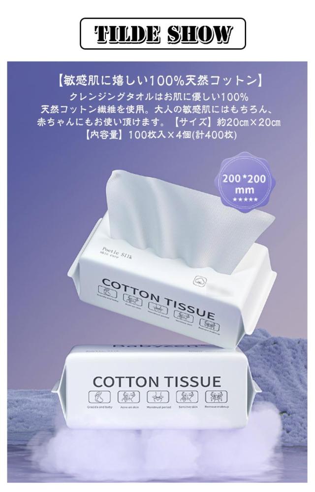 使い捨てタオル 100枚x4個 100枚x4個 クレンジングタオル 使い捨て 綿100% 厚手 タオル フェイスタオル 吸水 エンボス加工 敏感肌 洗顔 おしりふき 20*20cm タオル 薄手 瞬間吸湿 洗顔タオル コットン メイク落とし メイクオフ 顔拭き 肌に優しい 衛生的