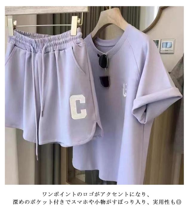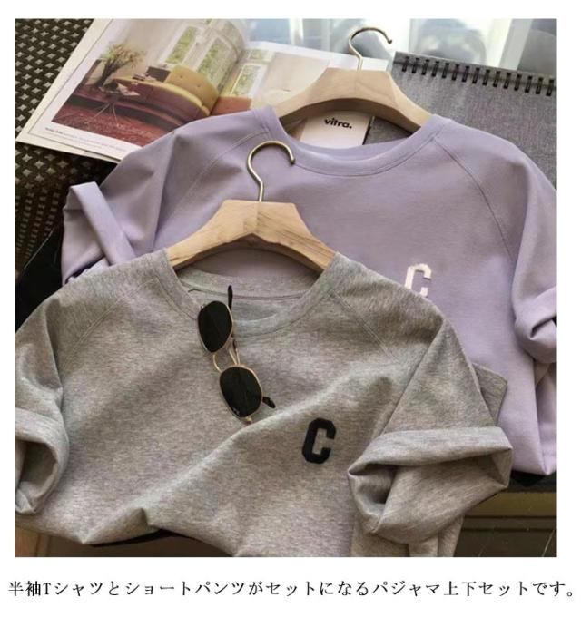 | ルームウェア 上下セット M〜2XL 半袖Tシャツとショートパンツがセットになるパジャマ上下セットです。 程よいゆったりとしたシルエットでストレスフリーは着心地。 ワンポイントのロゴがアクセントになり、 深めのポケット付きでスマホや小物がすぽっり入り、実用性も◎ | |