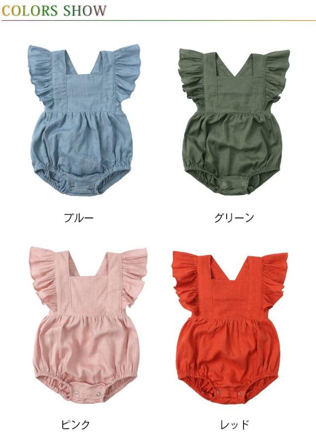 ベビーロンパース 夏 サロペット風 ボディスーツ 連体服 ベビーロンパース ベビー服 赤ちゃん フリル かわいい 新生児 出産祝い 7色 男女兼用 半袖