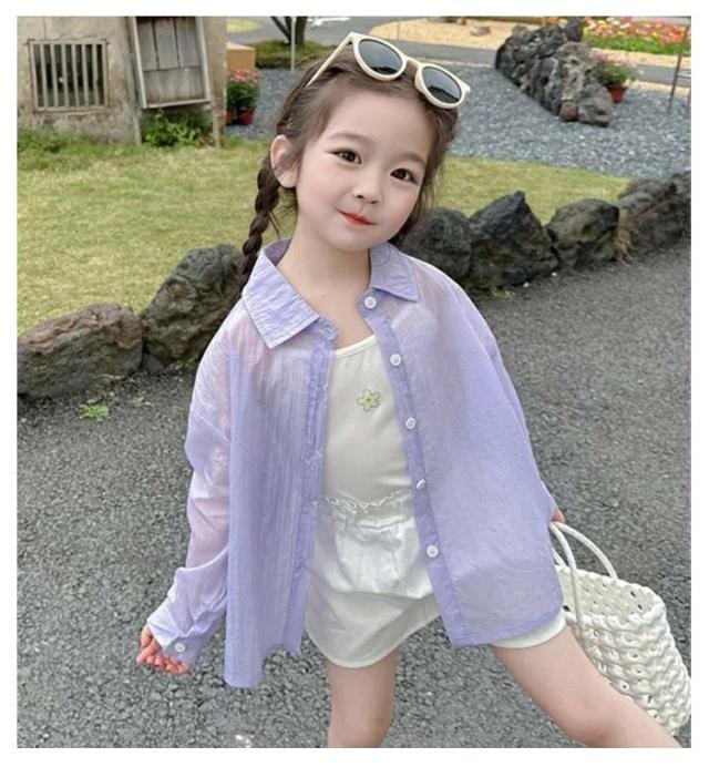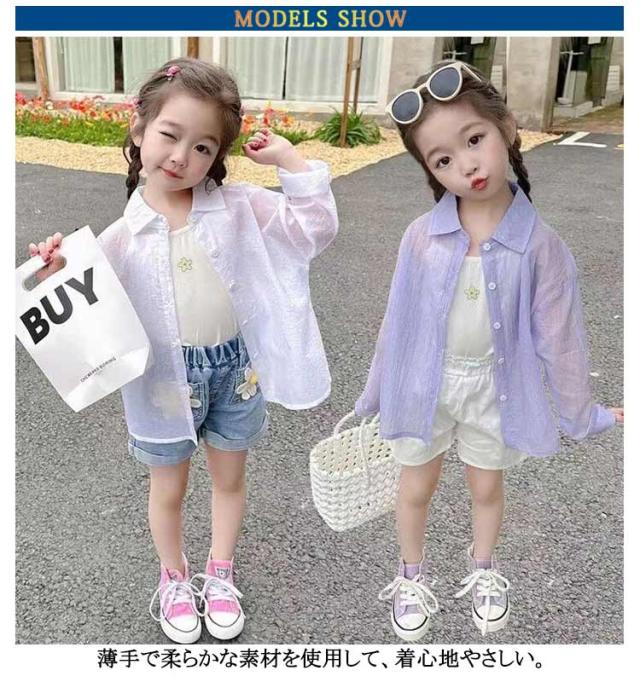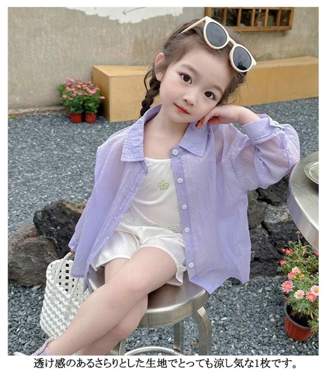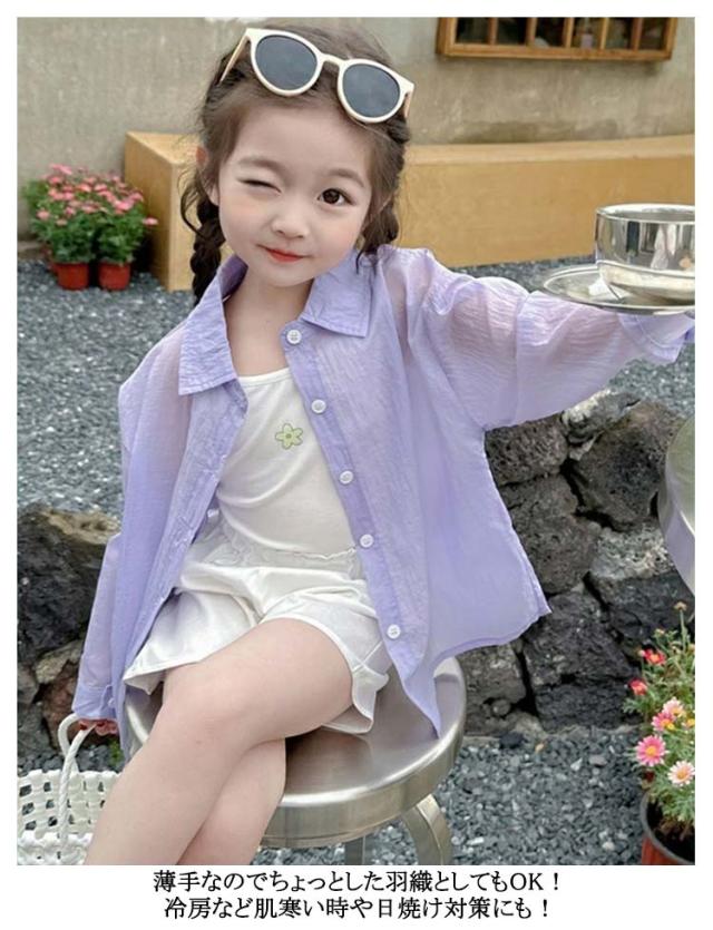 ホワイト 薄手 透け感 キッズ 日焼け止め キッズ アイスシルクサンジャケット 夏用 コート ベビー アウトドア 女の子向け 涼感カジュアルアウター 日焼け対策 男の子 女の子 パープル 90 100 110 120 130 140