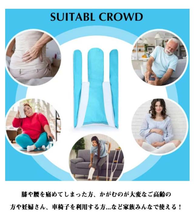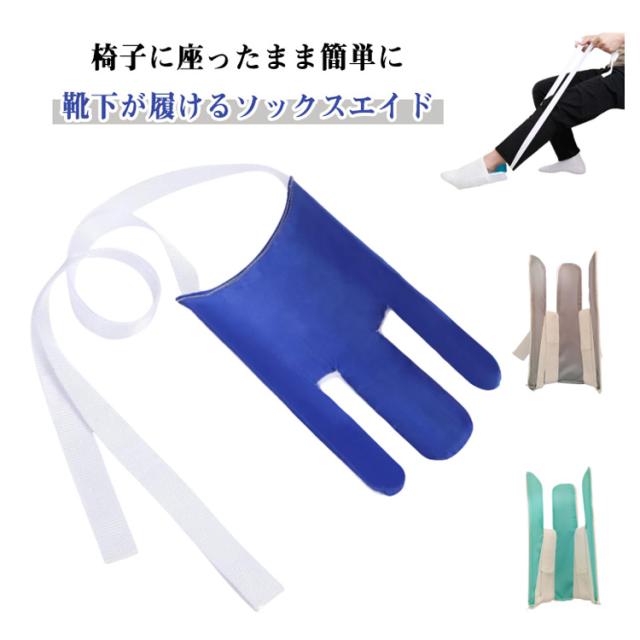 | 椅子に座ったまま簡単に靴下が履けるソックスエイド。 腰を曲げて前かがみになることなく椅子などに座ったまま楽な姿勢で靴下がはけます。 器具の先端に靴下をセットし、紐を引っ張るだけなので、介助やサポートなく自分で靴下を履くことができます 先端部が3つに分かれている先割れタイプですので、靴下へ抜き差しが簡単です。 内側はすべりの良い布、外側はすべりにくい布で覆われ、足の出し入れがスムーズです。 膝や腰を痛めてしまった方、かがむのが大変なご高齢の方や妊婦さん、車椅子を利用する方...など家族みんなで使える! | |