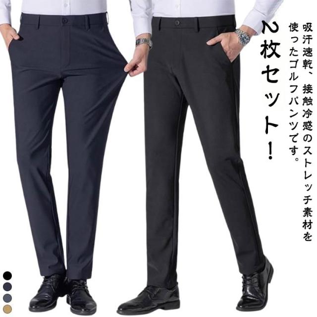 スリム 春夏 洗える 薄手 ゴルフパンツ 春夏 ゴルフウェア ストレッチ 速乾 涼しい イージーパンツ ロングパンツ メンズ スラックス スキニーパンツ 2枚セット ひんやり 美脚 送料無料 伸縮 接触冷感 ゴルフ ビジネス リモートワーク 在宅ワーク