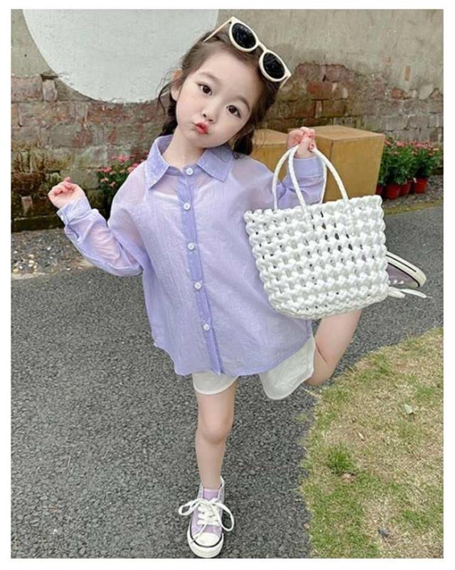 パープル コート アイスシルクサンジャケット ホワイト 薄手 キッズ 女の子 夏用 シアーシャツ ベビー 男の子 女の子向け 日焼け止め 透け感 日焼け対策 キッズ 涼感カジュアルアウター 90 100 110 120 130 140