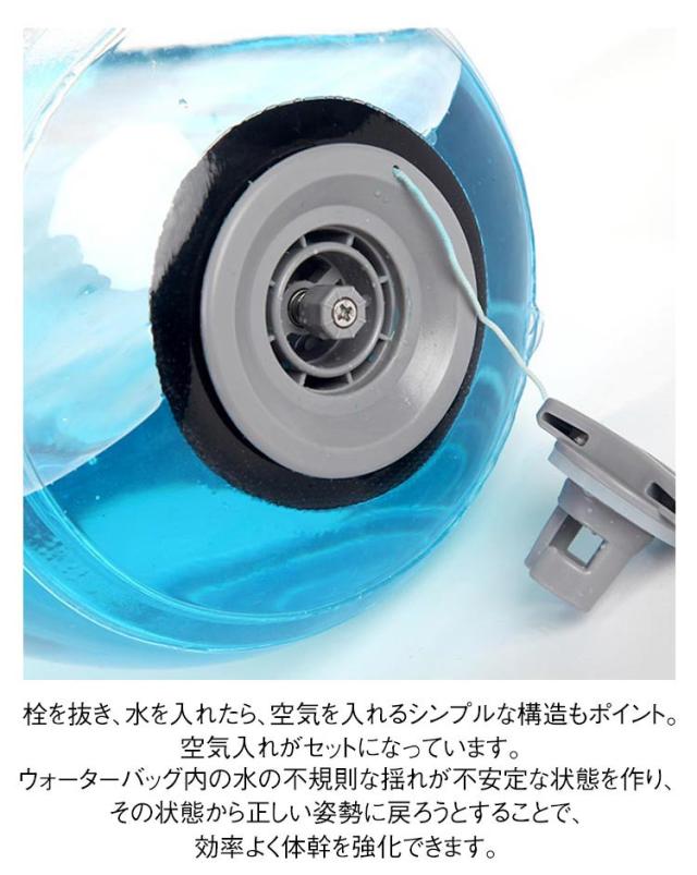 | 空気入れ付き!体幹トレーニングや筋トレに効果的なウォーターバッグ。 10kg 栓を抜き、水を入れたら、空気を入れるシンプルな構造もポイント。空気入れがセットになっています。 ウォーターバッグ内の水の不規則な揺れが不安定な状態を作り、その状態から正しい姿勢に戻ろうとすることで、効率よく体幹を強化できます。 水漏れや破れを防ぐPVC素材で作られているため、強度が高いのもうれしいポイント。 入れる水の量によって負荷を調整しやすいのも魅力。ダイエットや姿勢改善などを目的に軽い負荷でトレーニングしたいときから、本格的に筋肉を付けたいときまで、幅広いシーンで使えます。 持ち手も柔軟性があり、扱いやすいです。 折りたたみ可能で、使わないときはコンパクトに収納しやすくなっています。 自宅で手軽に筋トレしたい方はもちろん、体幹や下半身を鍛えることが重要となる野球やラグビー、サッカーなどに取り組む方たちにも人気です。 | |