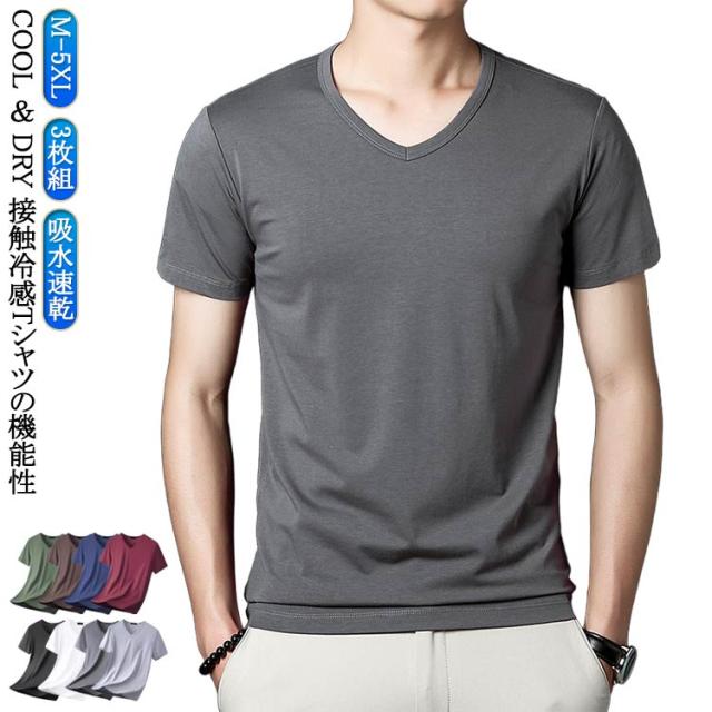 ひんやり インナー Tシャツ メンズ 3枚セット Vネック 接触冷感 レディース 機能性 インナー 半袖 おしゃれ Tシャツ 消臭 夏 夏服