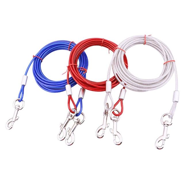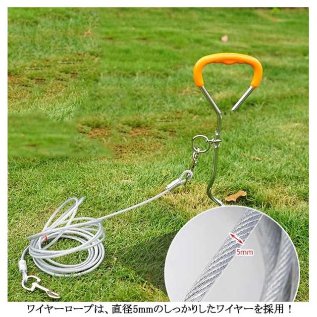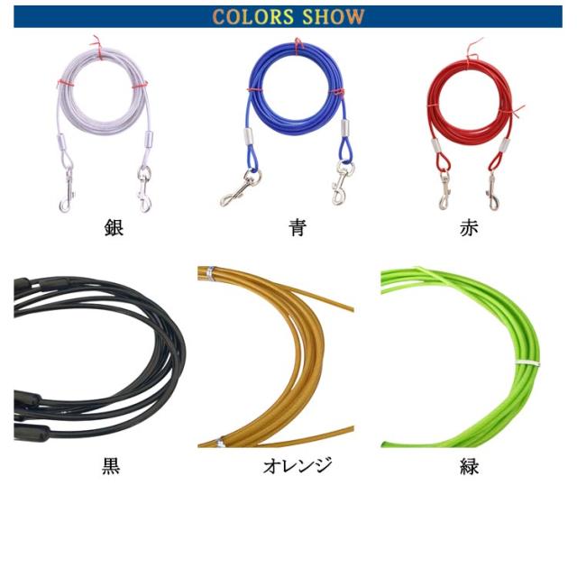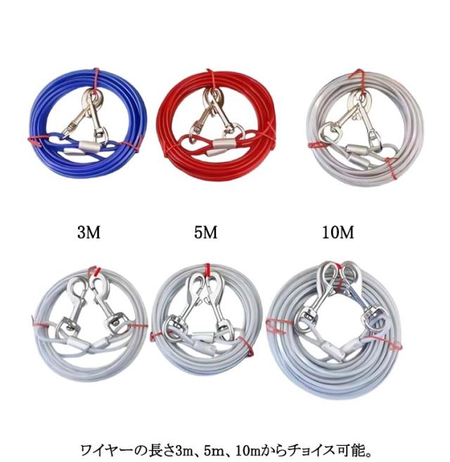 | 高張力強度・高耐久性のワイヤーリード。 両端には高品質の合金が固定される安全・安心設計。ワイヤーの両先端は大きめのナスカンを使用し、ポールやリードに繋ぎやすい◎ ワイヤーロープは、直径5mmのしっかりしたワイヤーを採用! ワイヤーの長さ3m、5m、10mからチョイス可能。 | |