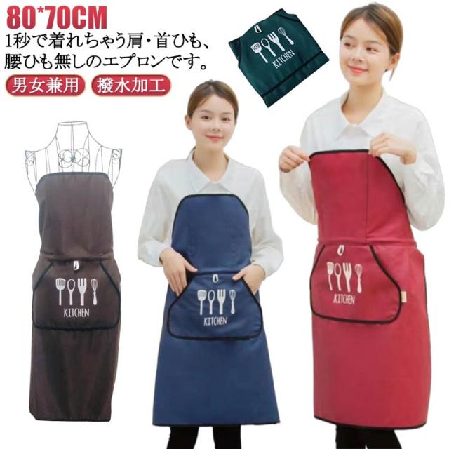 エプロン 防水 ポケット付き ひも無し レディース 人気 えぷろん おしゃれ メンズ 作業用 保育士 結ばなく ワンタッチ 割烹着 かっぽう着 介護士 保育士 カフェ 家庭用 花屋 1秒で着れる DIY ガーデニング 園芸 飲食店 業務用