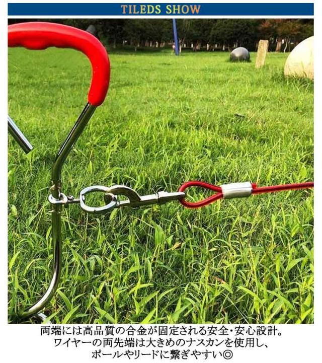 | 高張力強度・高耐久性のワイヤーリード。 両端には高品質の合金が固定される安全・安心設計。ワイヤーの両先端は大きめのナスカンを使用し、ポールやリードに繋ぎやすい◎ ワイヤーロープは、直径5mmのしっかりしたワイヤーを採用! ワイヤーの長さ3m、5m、10mからチョイス可能。 | |