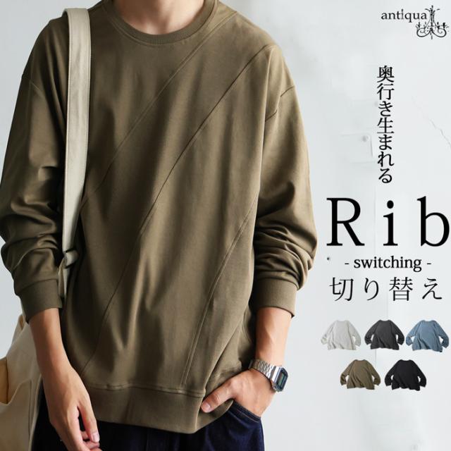 ポイント10%対象!29日20時〜3日10時 リブ切替 トップス メンズ 長袖 カットソー ロンT 綿100・再入荷 (100)メール便可 秋新作