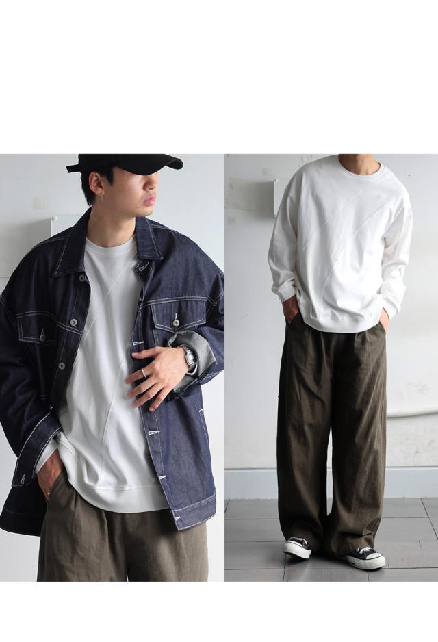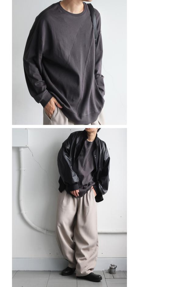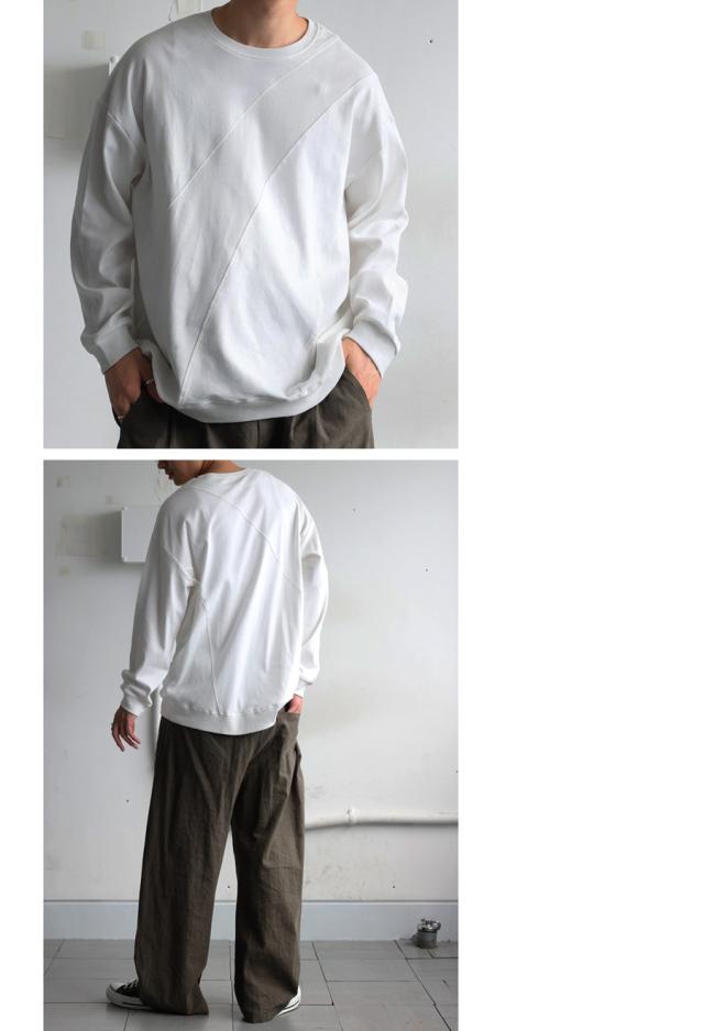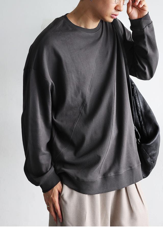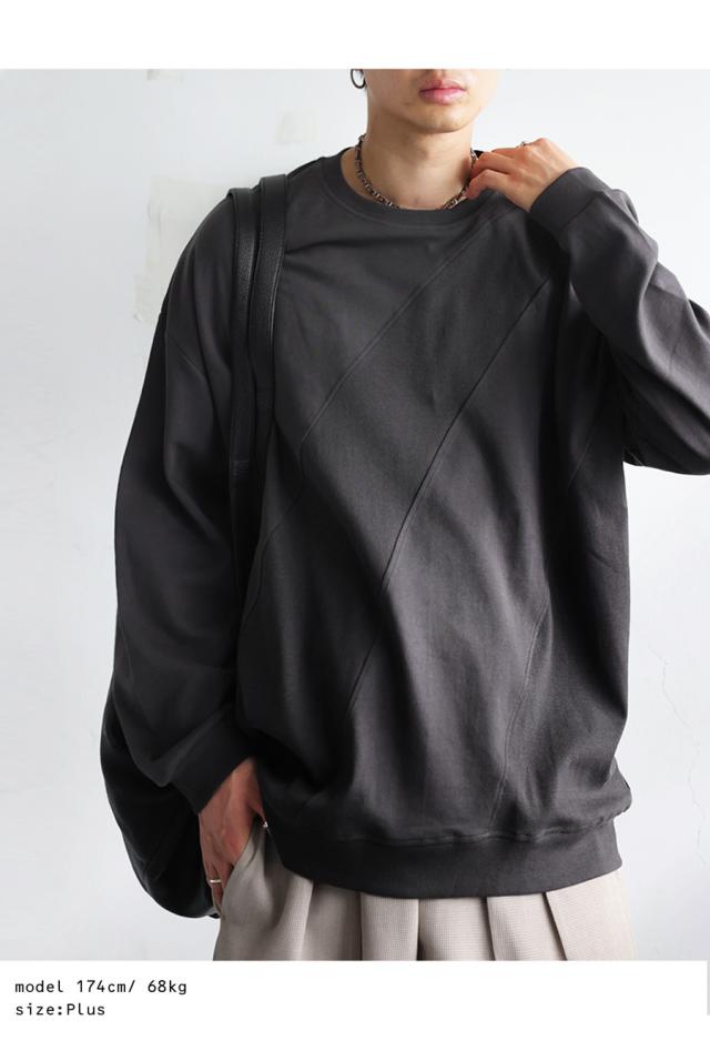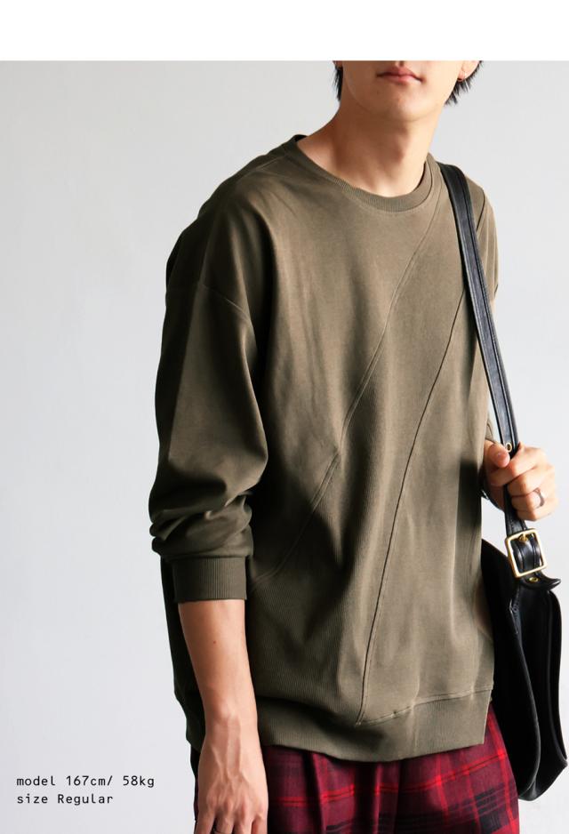 無地の中に斜めリブ切替を取り入れた柄感が、単調にならず立体的な印象を演出します。