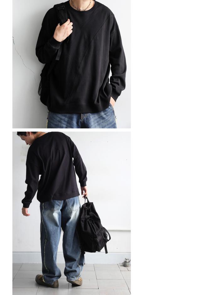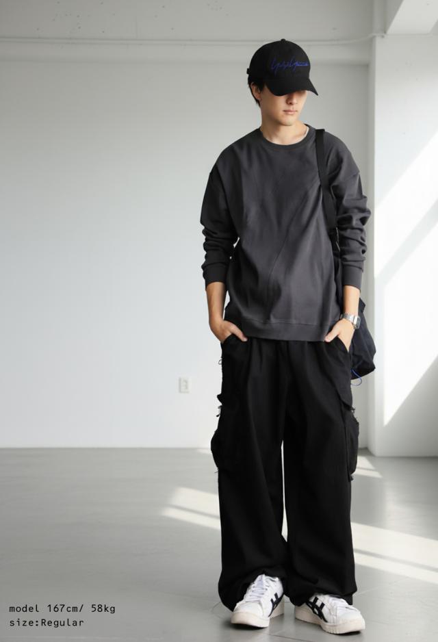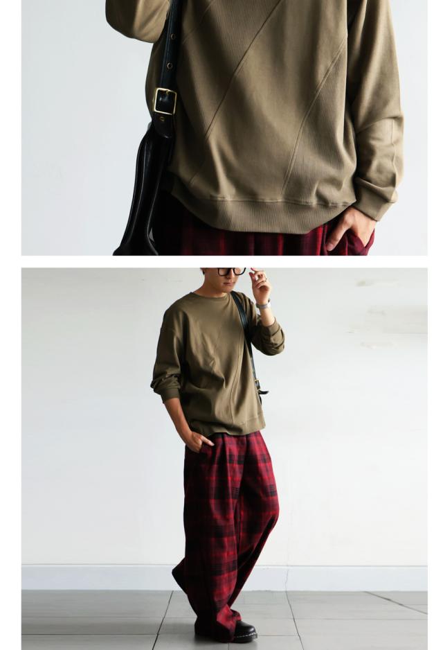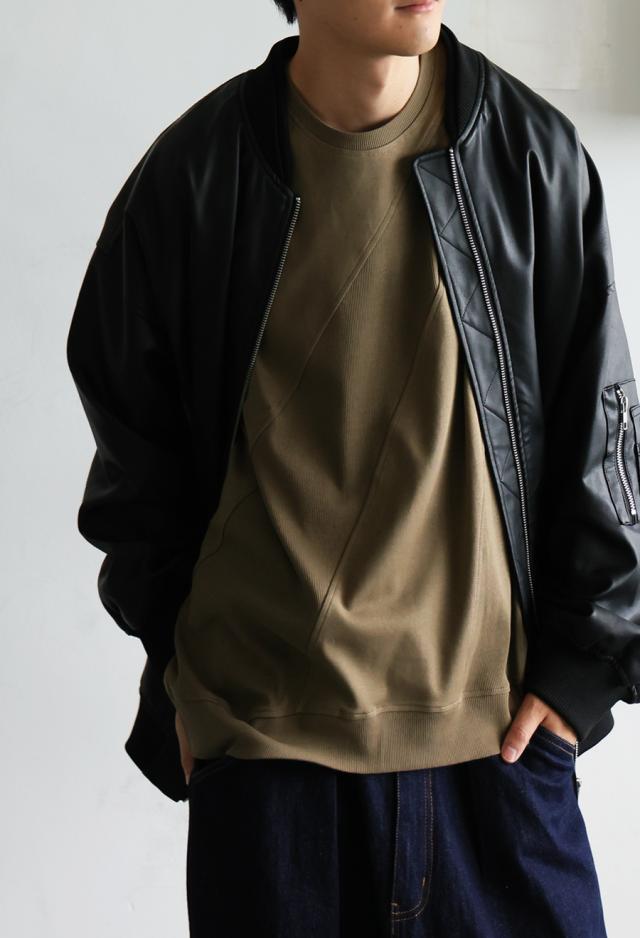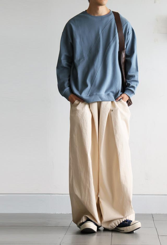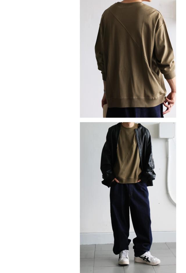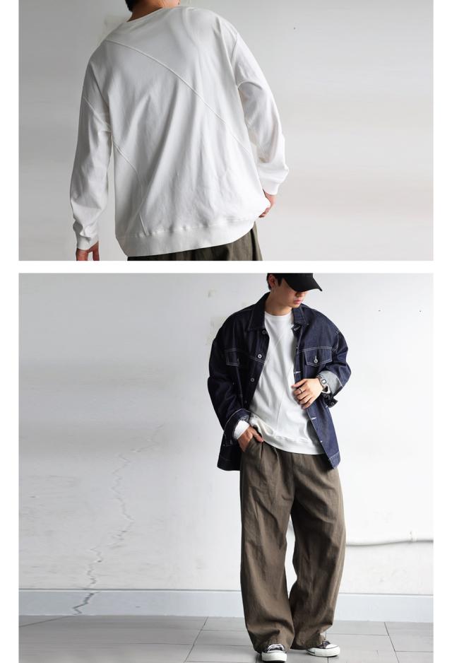 無地の中に斜めリブ切替を取り入れた柄感が、単調にならず立体的な印象を演出します。