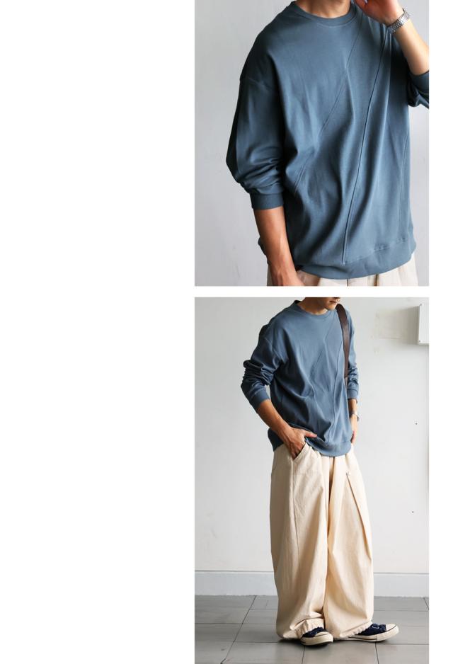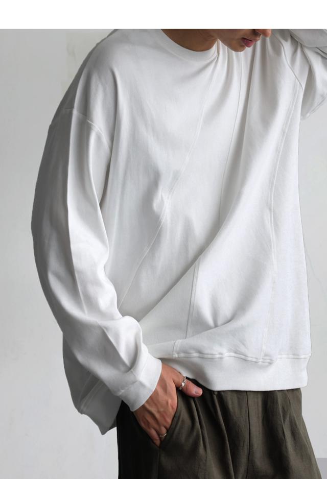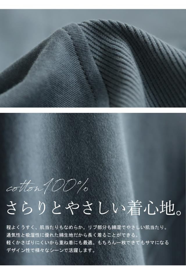 za-00272z Tシャツ プルオーバー 無地 クルーネック 丸首 リブ ドロップショルダー 体型カバー ゆったり シンプル ナチュラル カジュアル ゆったり 重ね着 レイヤード コットン