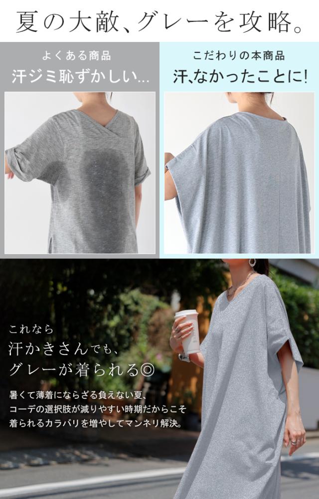 汗ジミ防止加工生地を使用したスリーブレスワンピースです。