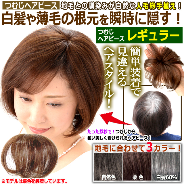 地毛との馴染みが自然な人毛総手植え!つむじヘアピース レギュラー 自然色 栗色 白髪 ヘアピース ヘアボリューム 毛流れ ベースネット ウィッグ