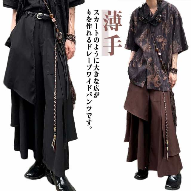 ロング丈 ゆったり 和風 パンツ メンズ ワイドパンツ ユニセックス 袴パンツ ワイドパンツ ハカマパンツ サルエルパンツ ガウチョパンツ 男女兼用 春夏 ボトムス 薄手 おしゃれ 大きいサイズ カジュアル