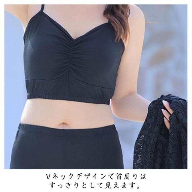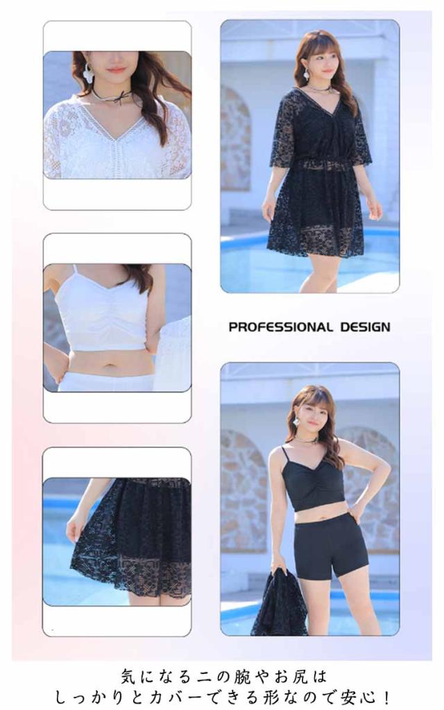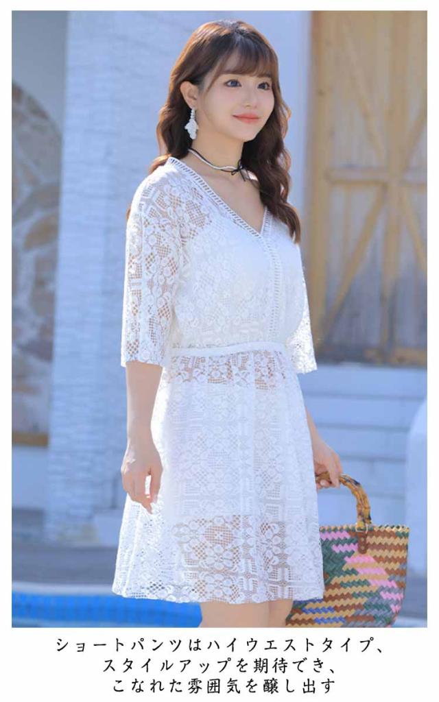 | 上品で繊細なレースのスウィムウェア。3点セット タンキニ、ハーフパンツのセットなので肌の露出が苦手な方でも挑戦しやすいデザインです。 清楚でフェミニンな雰囲気が魅力の総レースのワンピース付き。 気になる二の腕やお尻はしっかりとカバーできる形なので安心! Vネックデザインで首周りはすっきりとして見えます。 水陸両用で使えるので様々なシーンに対応できる ショートパンツはハイウエストタイプ、スタイルアップを期待でき、こなれた雰囲気を醸し出す リゾート、温泉、プール、海、川などのレジャーまで幅広くご使用いただけます。 パット付き. | |