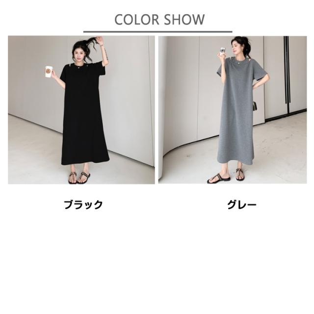 Tシャツワンピース ワンピース グレー ワンピース 無地 オフショルダー ロングワンピース レディース 夏用 マキシ丈ワンピース カジュアルワンピース ゆったり Hライン 着?せ 大きいサイズ サマーワンピース ブラック M L XL 2XL