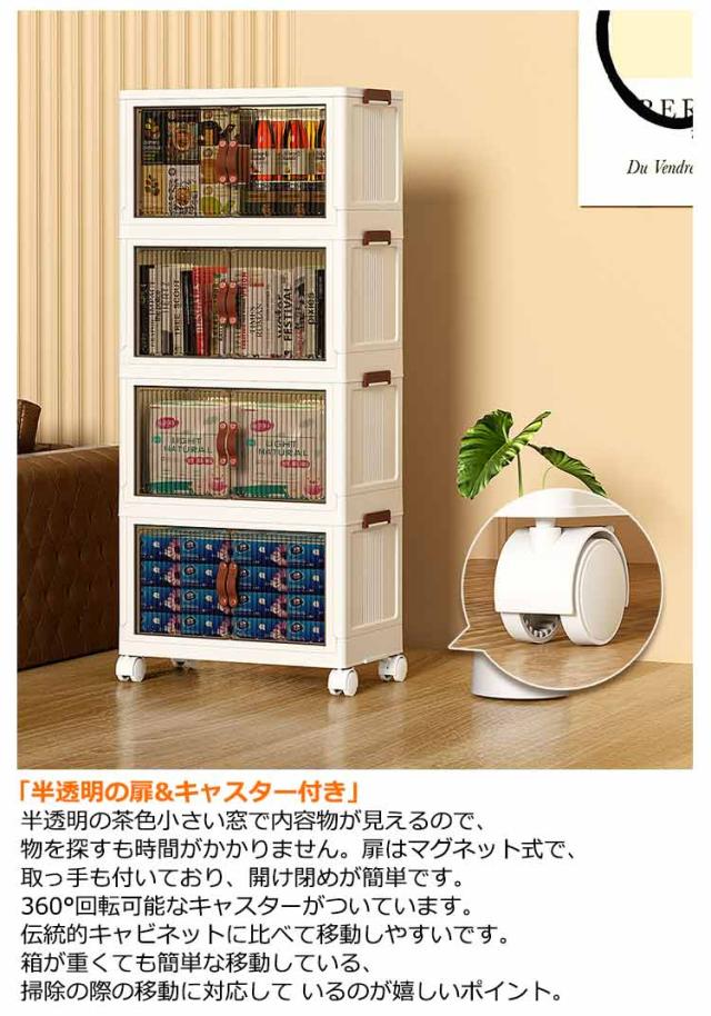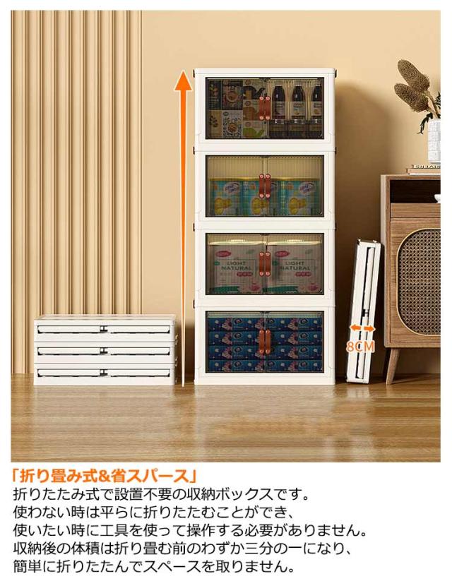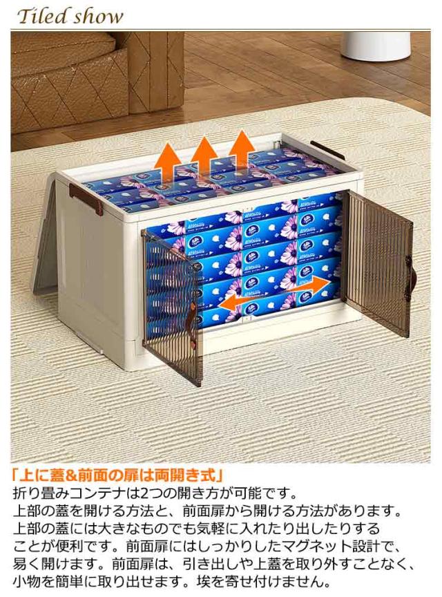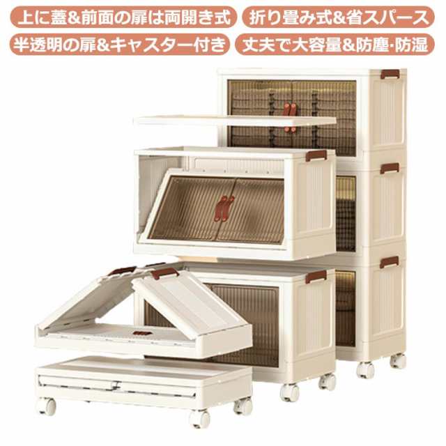コンテナボックス フタ付 蓋付き 収納 収納ボックス 折り畳み 収納ケース 折りたたみ 前開き キャスター付き 収納棚 扉付き クリア 収納箱 折りたたみボックス 積み重ね おもちゃ 衣装ケース プラスチック 小物 衣替え 整理 ケース 透明