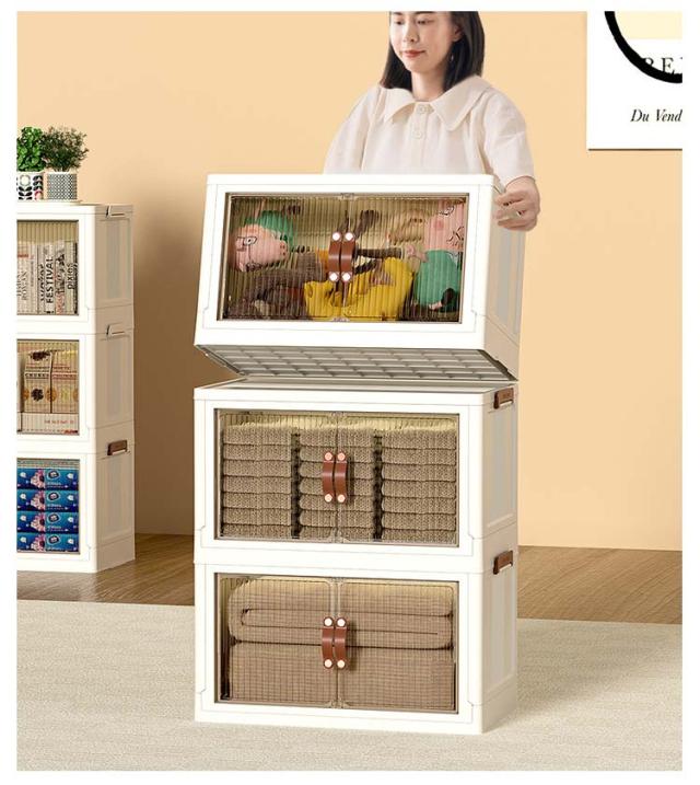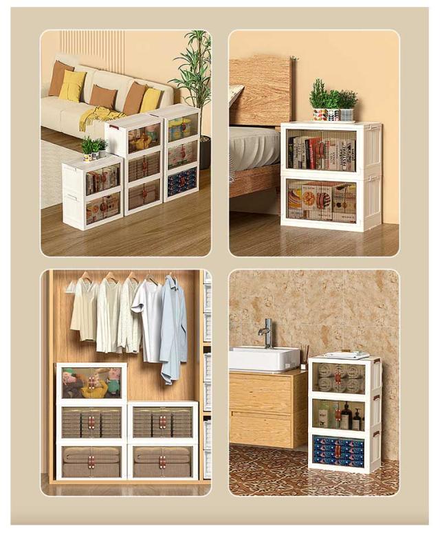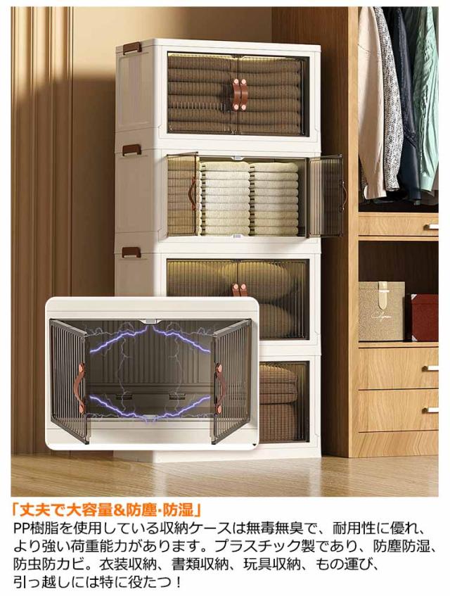 | 「上に蓋&前面の扉は両開き式」 折り畳みコンテナは2つの開き方が可能です。上部の蓋を開ける方法と、前面扉から開ける方法があります。上部の蓋には大きなものでも気軽に入れたり出したりすることが便利です。前面扉にはしっかりしたマグネット設計で、易く開けます。前面扉は、引き出しや上蓋を取り外すことなく、小物を簡単に取り出せます。埃を寄せ付けません。 「折り畳み式&省スパース」 折りたたみ式で設置不要の収納ボックスです。使わない時は平らに折りたたむことができ、使いたい時に工具を使って操作する必要がありません。収納後の体積は折り畳む前のわずか三分の一になり、簡単に折りたたんでスペースを取りません。 「簡単な組立&速く使える」 10秒組み立て折りたたみ式収納箱。部品を一緒に折るために約 10 秒だけ簡単な方法とそれを組み立てます取ります。組み立ても分解も非常に素早く、工具や手間をかけずに、女の子や子どもでも一分以内に楽に組み立てることができます。 「丈夫で大容量&防塵?防湿」 PP樹脂を使用している収納ケースは無毒無臭で、耐用性に優れ、より強い荷重能力があります。プラスチック製であり、防塵防湿、防虫防カビ。衣装収納、書類収納、玩具収納、もの運び、引っ越しには特に役たつ! 「半透明の扉&キャスター付き」 半透明の茶色小さい窓で内容物が見えるので、物を探すも時間がかかりません。扉はマグネット式で、取っ手も付いており、開け閉めが簡単です。360°回転可能なキャスターがついています。伝統的キャビネットに比べて移動しやすいです。箱が重くても簡単な移動している、掃除の際の移動に対応して いるのが嬉しいポイント。 | |