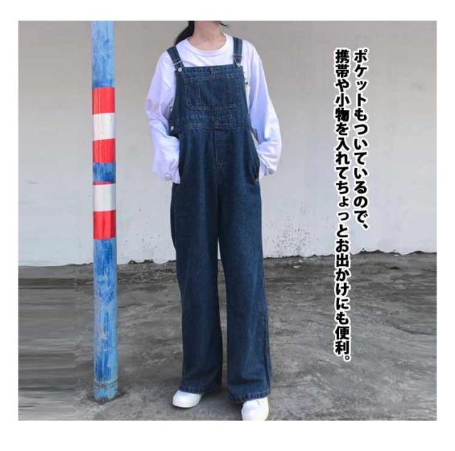サロペット デニムサロペット レディース オーバーオール ワイドパンツ オールインワン ロングパンツ かわいい ポケット付き 普段着 デニムパンツ 大きいサイズ カジュアル 楽ちん リラックス 体型カバー マタニティ 春 夏 秋