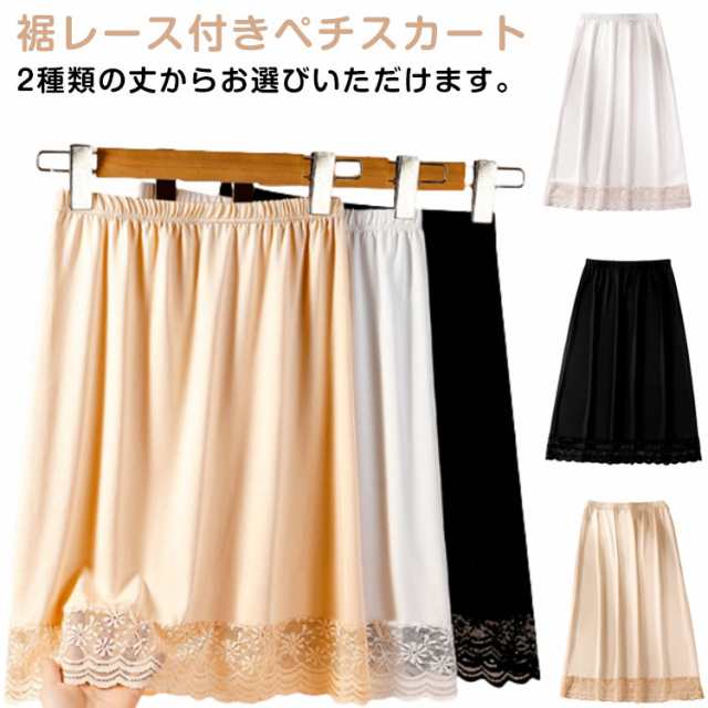 | ブラック/ホワイト/ベージュ ペチコート 裾レース付きペチスカート 2種類の丈からお選びいただけます。 通気性があり、柔らかく肌に優しい。 重ね着でコーディネートしやすく、一年中着用できます。 | |