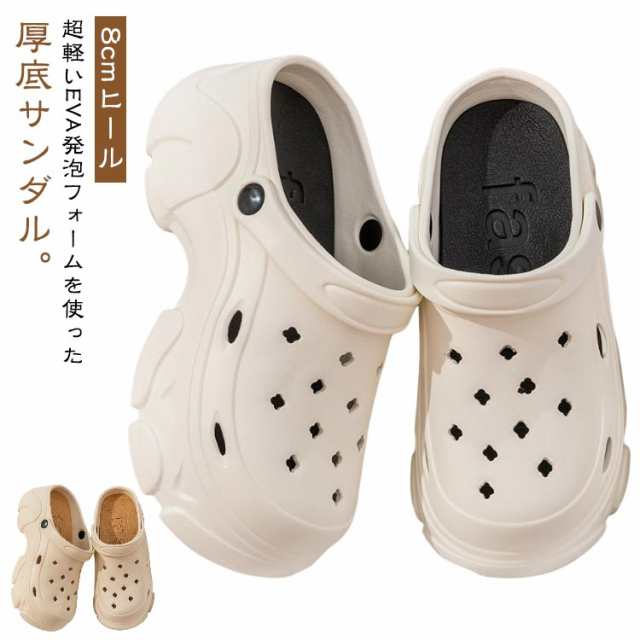 クロッグ レディース ヒール サンダル プラット底 スリッポン クロッグサンダル 厚底 サボサンダル 履きやすい 歩きやすい 厚底サンダル かわいい フラットフォーム EVA 軽い 超軽量 8cm 厚底サンダル 穴 配色 柔らかい 春 夏 靴 防水 カジュアル ウォーキングシューズ
