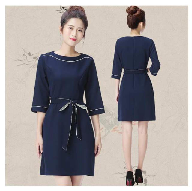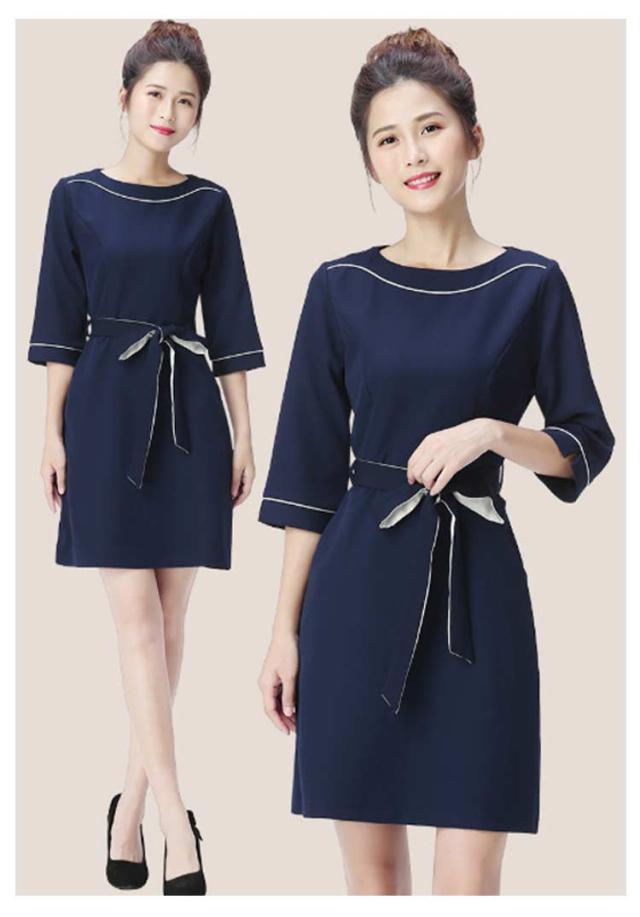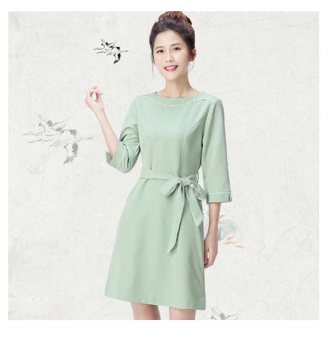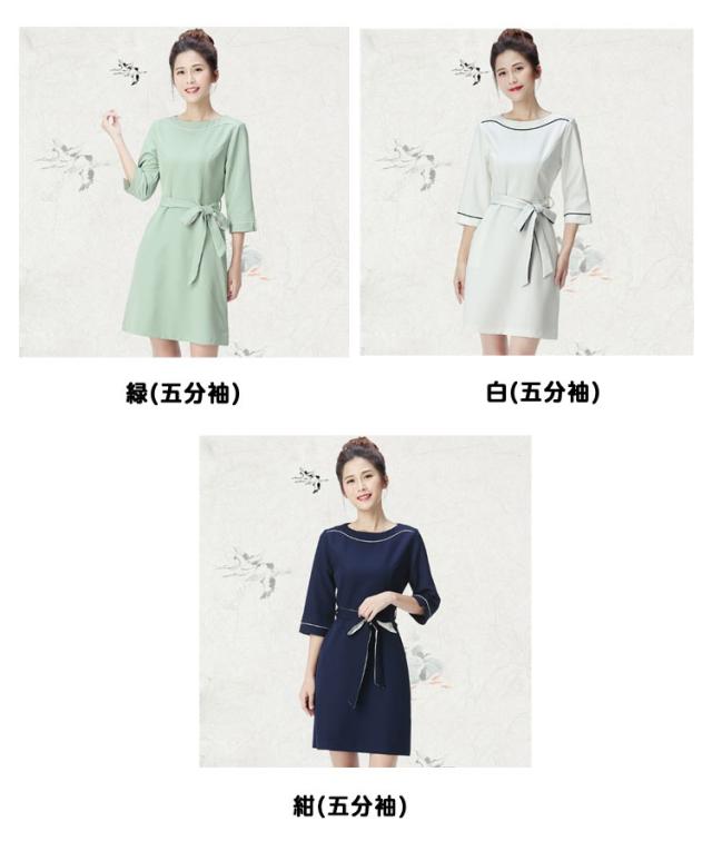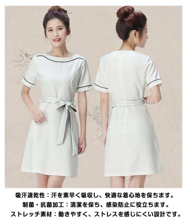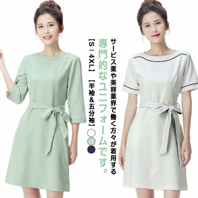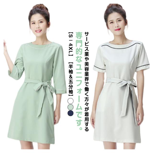 女性 パイピング ネイル 半袖 クルーネック 通勤 ワンピース レディース サービス業 エステ 制服 サロン リボン付き 制服 おしゃれ サロンウェア 無地 五分袖 エステ ユニフォーム サロン 美容 歯科衛生士 制服 仕事 ホテル