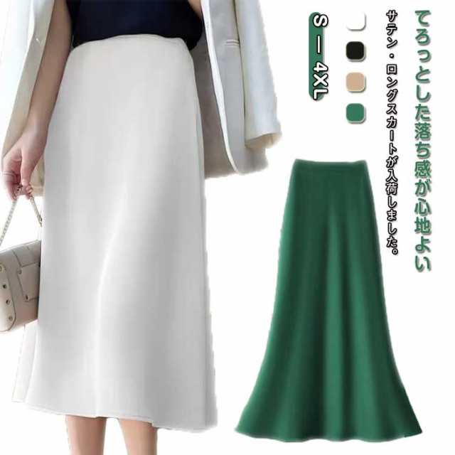| てろっとした落ち感が心地よい、サテン・ロングスカートが入荷しました。ふわっと広がるフレアが上品な、マーメイド・シルエット。 ストレッチ、楽ちん仕様に。 滑らかなツヤ感がトレンド感たっぷりな | |