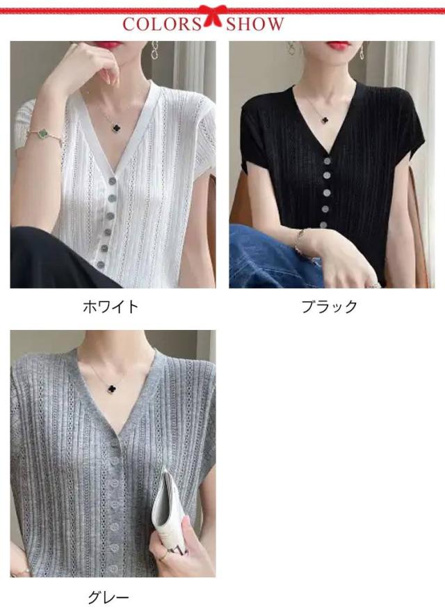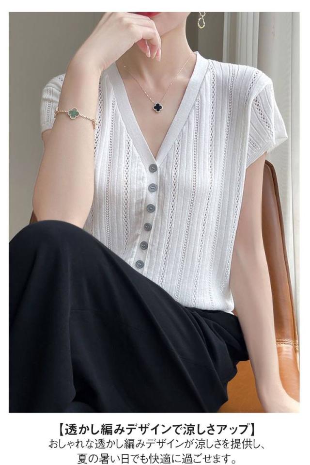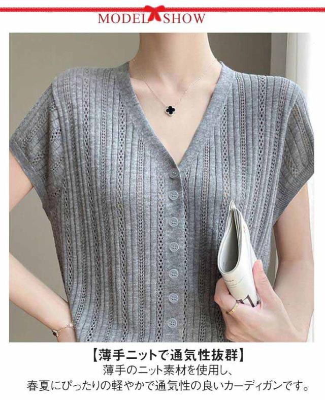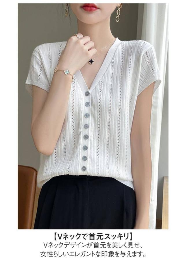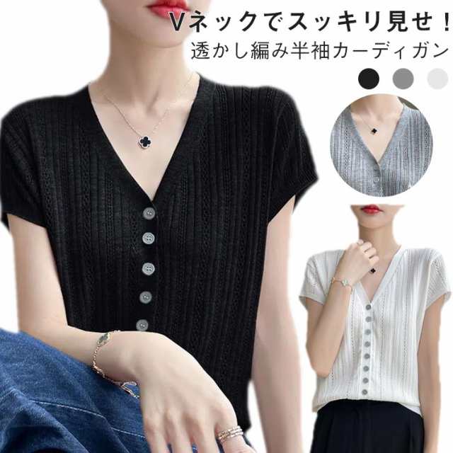 透かし編み Vネックトップス 春夏 サマーカーディガン 春夏 半袖 薄手カーディガン サマーニット シンプル おしゃれ 30代 40代