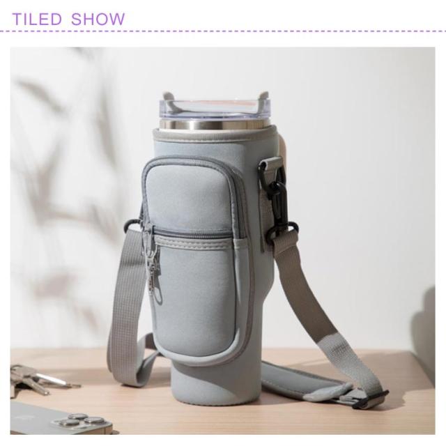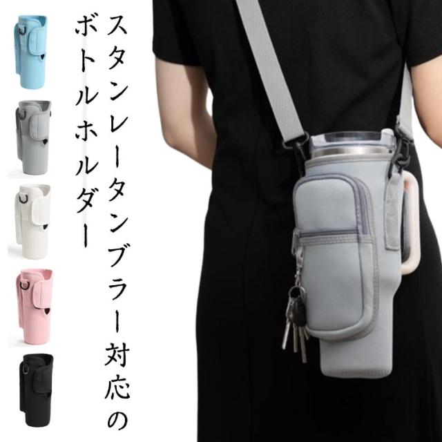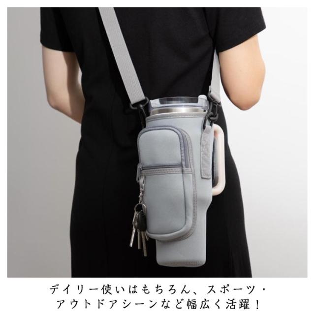 ドリンクホルダー ショルダー ポケット ポーチ 多収納 水筒カバー 水筒ケース スタンレーカップ対応 水筒ホルダー ハイキング タンブラー用 肩掛け 旅行 大容量 キャンプ用 運動 遠足