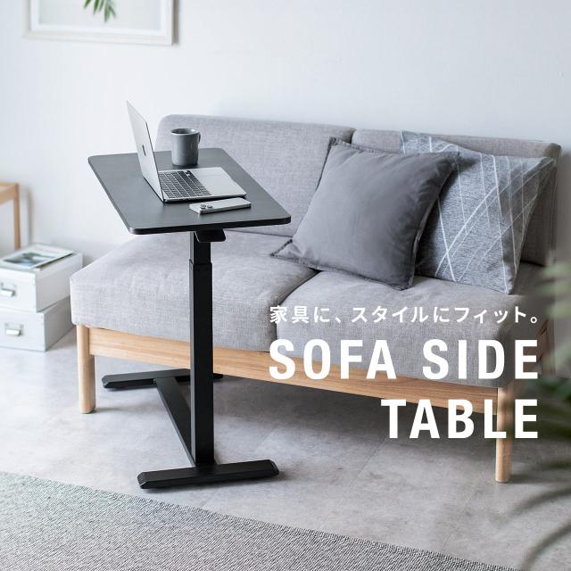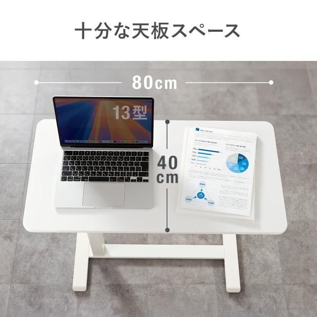 ソファサイドテーブル サイドテーブル ガス圧昇降テーブル 低床化キャスター 幅80cm 奥行40cm 昇降幅33cm ブラック ホワイト[100-ERD046]