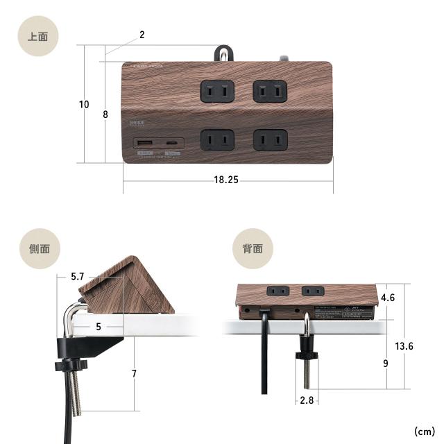 ●デスクなどにクランプで設置できるUSBポート付き電源タップです。●クランプでしっかりと固定できます。