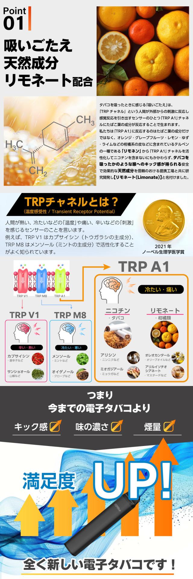 今までの電子タバコ(ベイプ・VAPE)製品は、刺激の強いメンソールや清涼剤で吸いごたえを表現していましたが、