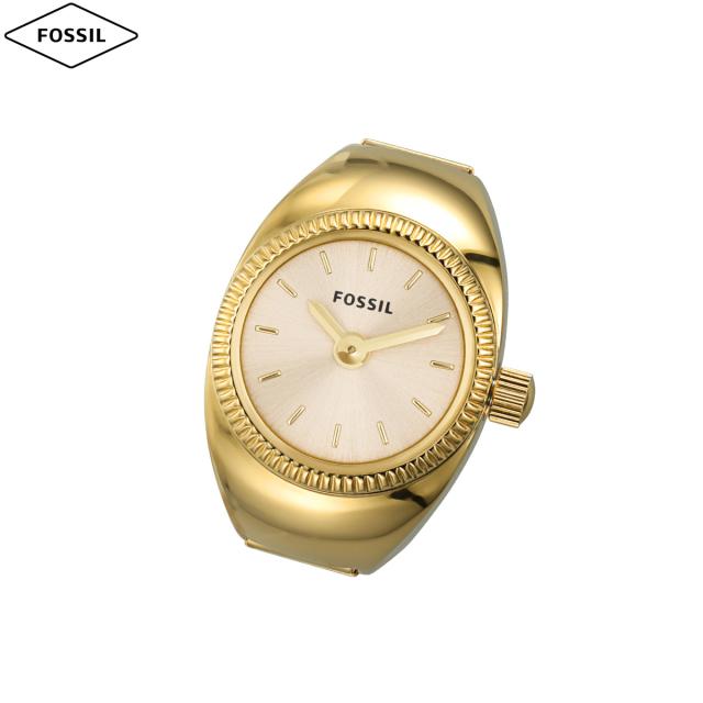 15mm径のケースに二針ムーブメントを搭載したウォッチリング。ゴールドトーンのサンレイダイヤルに、ゴールドトーンのステンレススチールバンドを組み合わせました。【フォッシル FOSSIL】