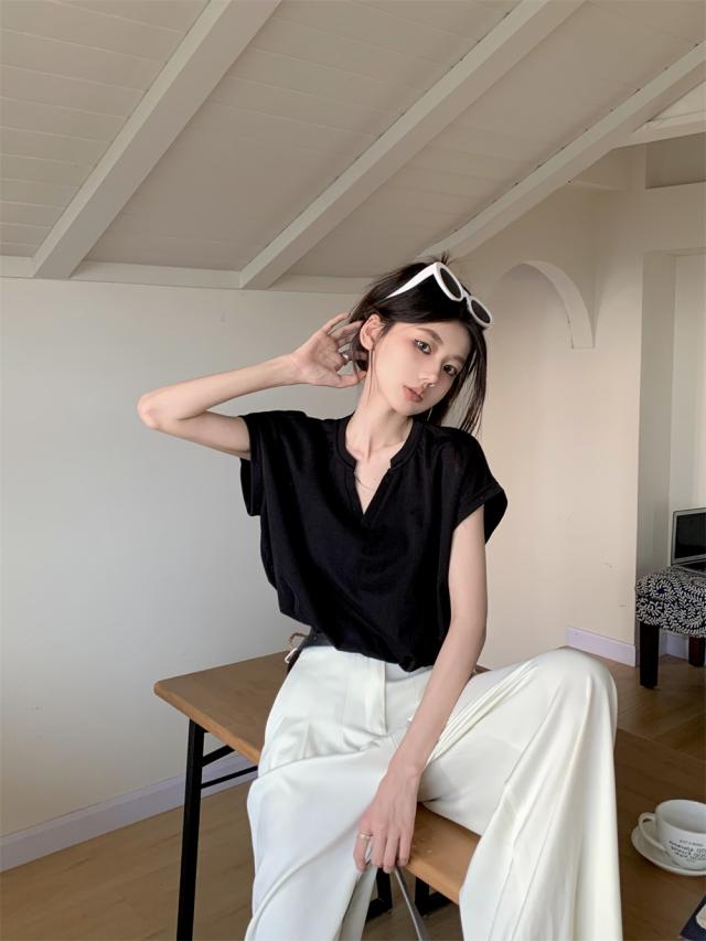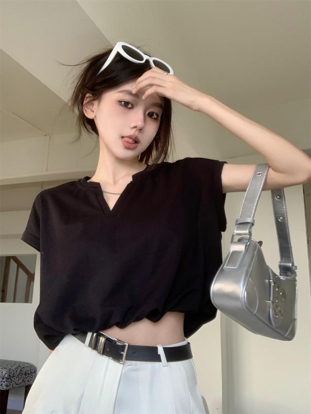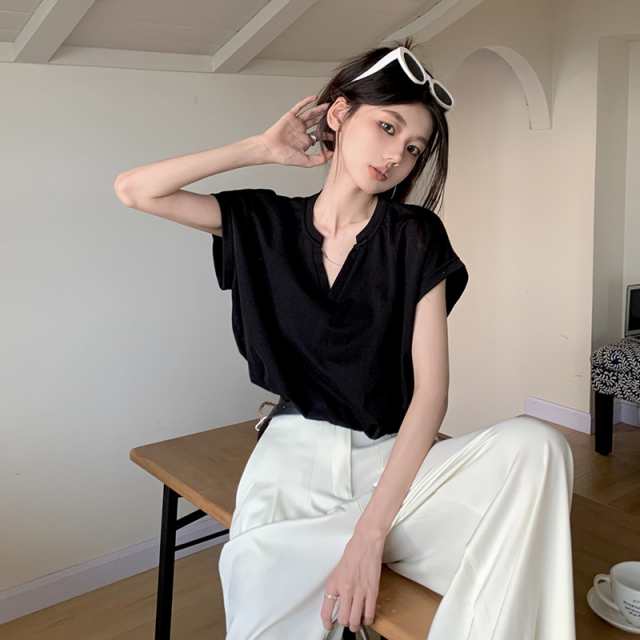 トップス tシャツ vネック ファッション 黒 白 レディース おしゃれ 無地 半袖 vネックtシャツ 女性用 春夏 夏服 ゆったり コットン カジュアル シンプル
