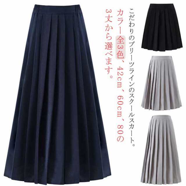 制服 スカート レディース スクールスカート プリーツスカート 3タイプ丈 ミニ丈 膝丈 ミモレ丈 学生服 無地 フォーマル サイドゴム aライン 女子高生 中学 高校 通学 グレー 黒 紺 高校生 中学生 イベント セーラー服 仮装 コスプレ 入学 大きいサイズ