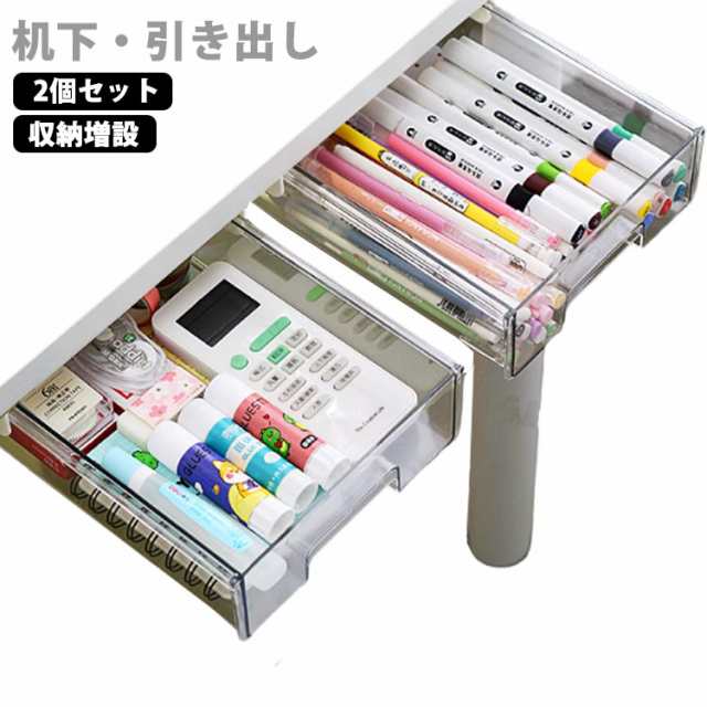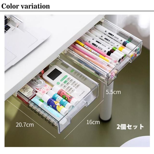 机下 収納ケース 2個セット 引き出し デスク下 収納ボックス 透明 後付け デスク下 収納トレー 引き出し式 机 テーブル 収納 穴あけ不要 整理 簡単取り付け DIY トレー スライド収納 小物収納 大容量 オフィス収納 机の下 増設 勉強机 テーブル下