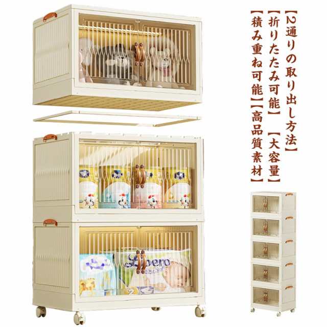 折りたたみコンテナ 収納ボックス キャスター付き コンテナボックス 大容量 2段 観音開き 両開き 扉付き 積み重ね 蓋付き フタ付き 収納ケース キッチン収納 衣類収納 折り畳み 衣装ケース 整理整頓 おしゃれ プラスチック 折りコン 押し入れ収納 小物 日用品 整理 北欧