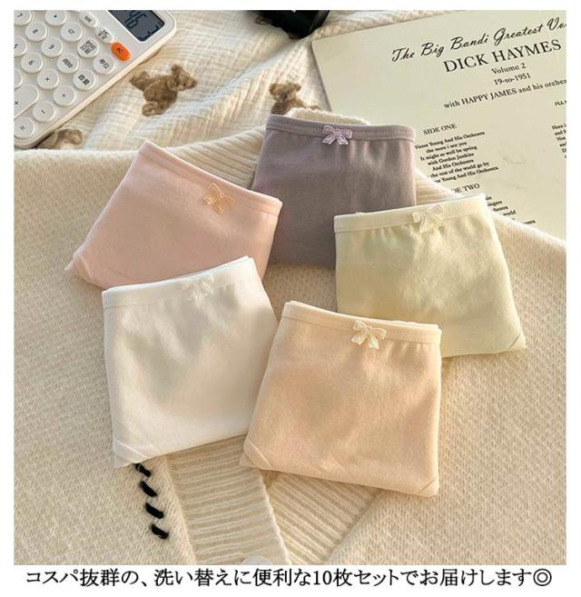 10枚組 レディース 綿 かわいい ショーツ 下着 コットン インナー 女性 綿パン パンツ パンティー パンティ リブ リボン スタンダードショーツ スタンダード ジュニア 女子 10枚組 シンプル 通気性