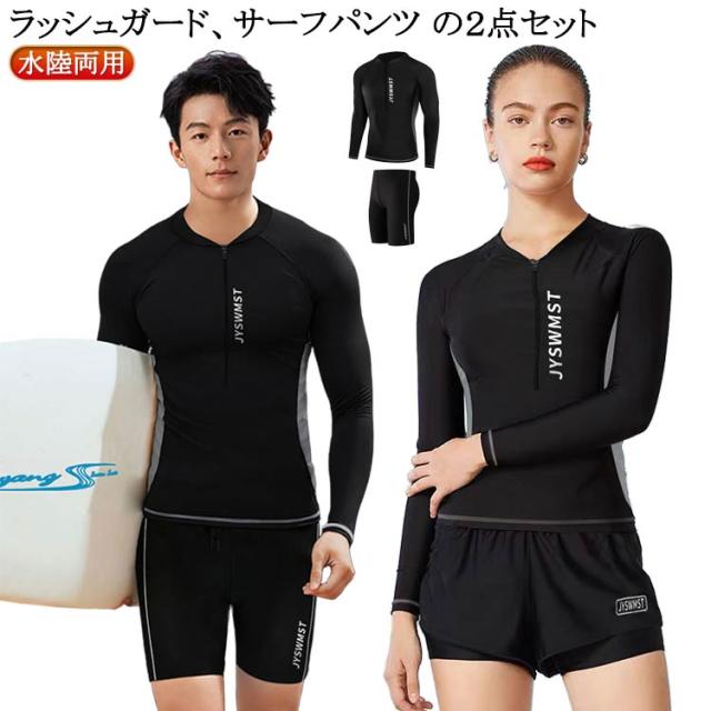 サーフパンツ 水着 セットアップ 水陸両用 メンズ フィットネス レディース ラッシュガード 上下 水着メンズ 海水パンツ 日焼け防止 スポーツウェア スポーツ スイムウェア 水着 ランニングウェア サーフィン 黒 ブラック サーフショーツ