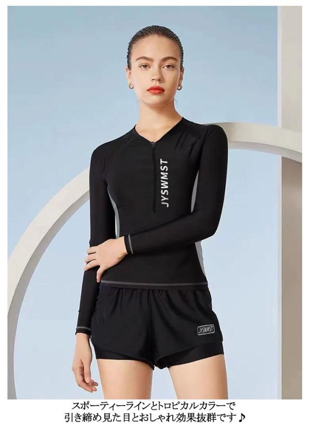 | ラッシュガード、サーフパンツ の2点セット 上下セットだからこれだけでOK! オシャレにきまる♪ 今季トレンドのスポーティーデザインで、スイムウェアとしてだけでなく、 ランニングやジムなど スポーツウェアとしても使える♪ 水着ハイシーズンまでの限定価格です! 紫外線対策としてだけでなく、 体型カバーとしても大注目のラッシュガード。 スポーティーラインとトロピカルカラーで 引き締め見た目とおしゃれ効果抜群です♪ | |